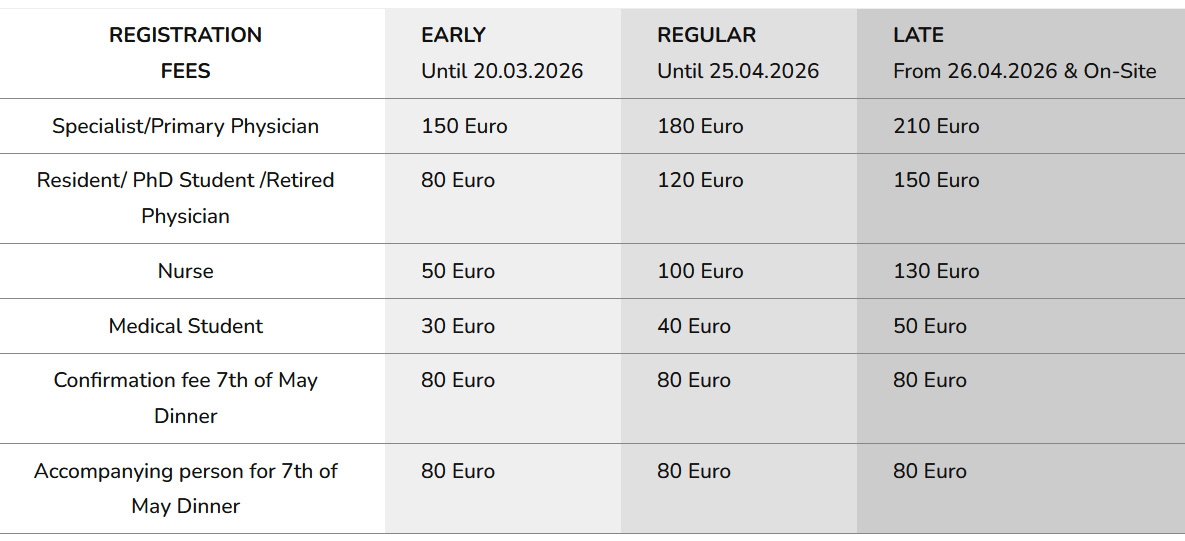 | REGISTRATION FEES | EARLY Until 20.03.2026 | REGULAR Until 25.04.2026 | LATE From 26.04.2026 & On-Site |